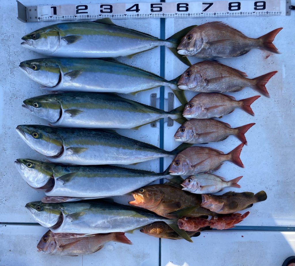 午後便短時間釣行!ナブラ湧いたのでトップでハマチが釣れ、鯛もぼちぼち釣れました!またのご予約お待ちしております!