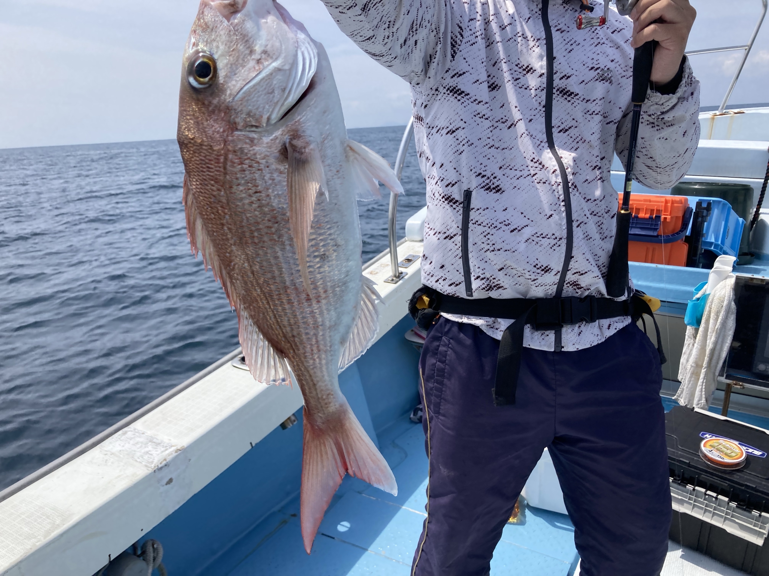 昨日とは違い鯛がほとんど当たらずハガツオに邪魔され仕掛けが落ちない状態でしたが、最後のひと流しで70の大鯛釣れました!自己記録更新おめでとうございます!またのご予約お待ちしております!