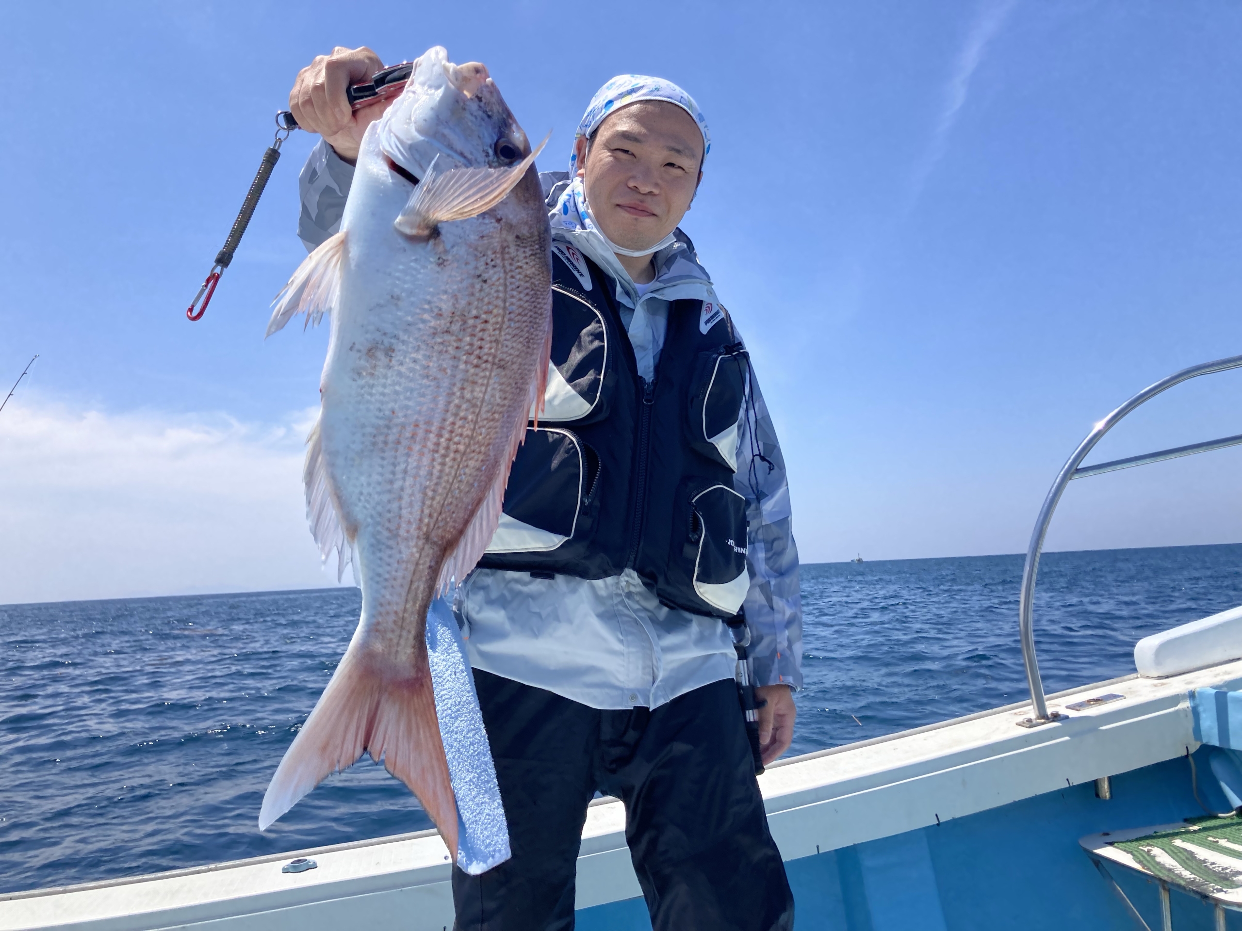 政丸初の80オーバーが釣れました!初鯛も釣れてよかったです!おめでとうございます!2回大きい当たりありましたが、ラインブレイク!姿を見てみたかったですね!またのご予約お待ちしております!