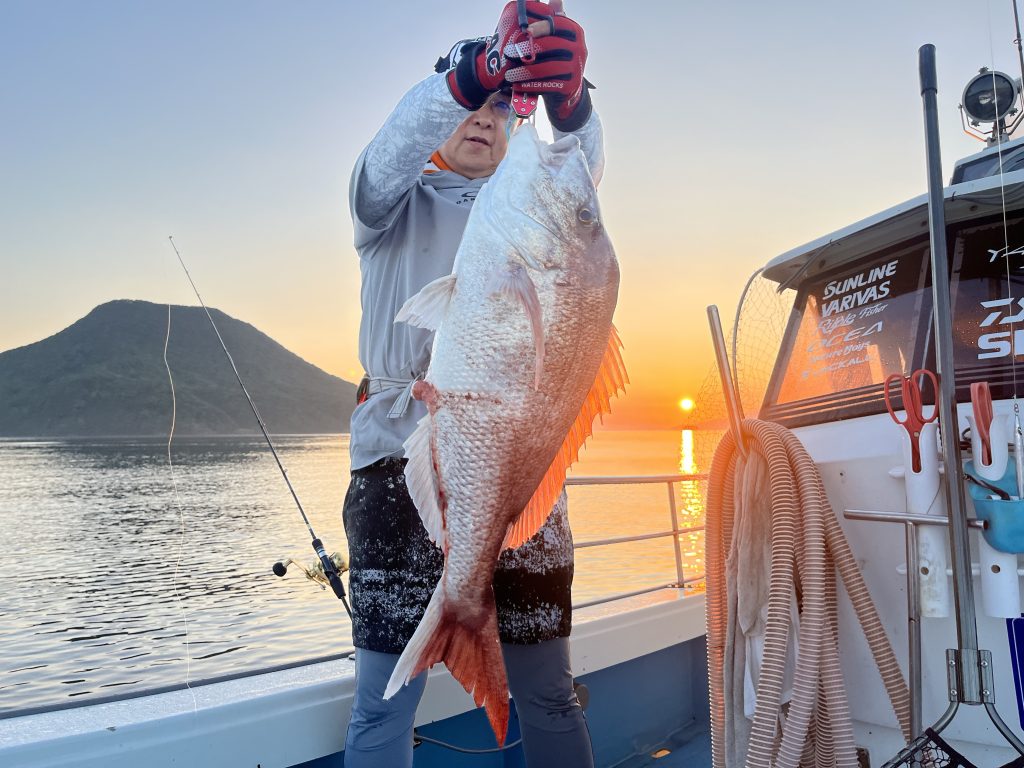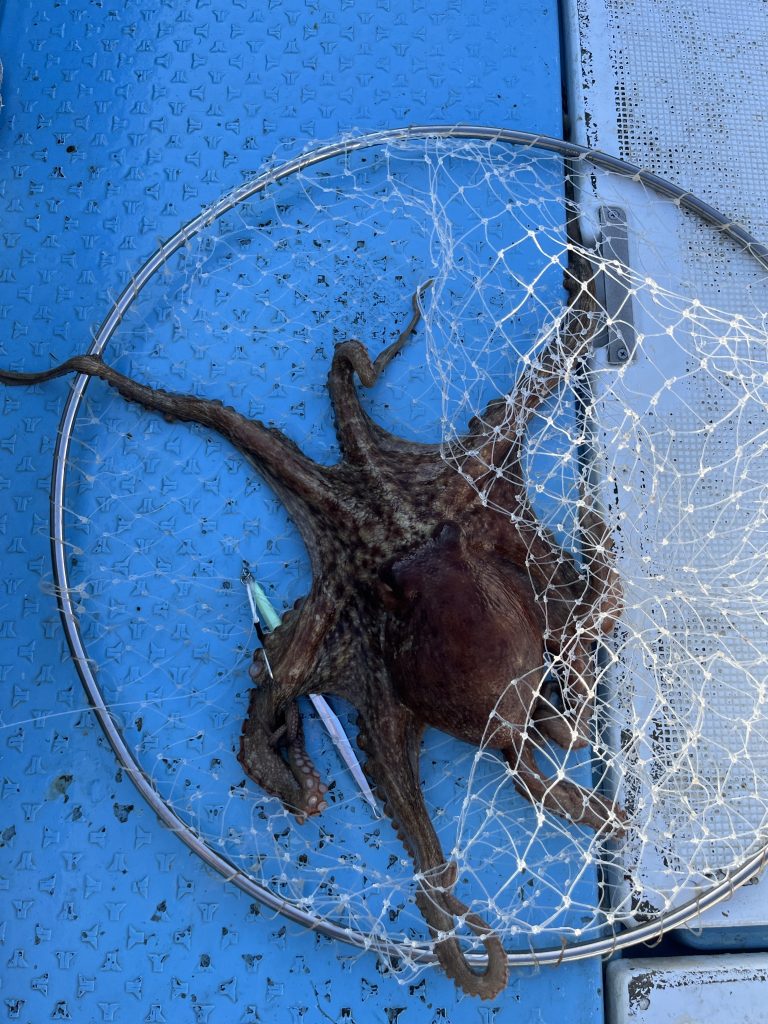 調査に行ってきました!朝一に79センチの鯛が釣れ、やっとこさブリも釣れ、ハガツオも大漁でした!ハガツオもこの大きさなら美味しいはず!まさかのジグにタコもビックリでした!7月から早朝アカイカ、SLJ募集します!ご予約お待ちしております!