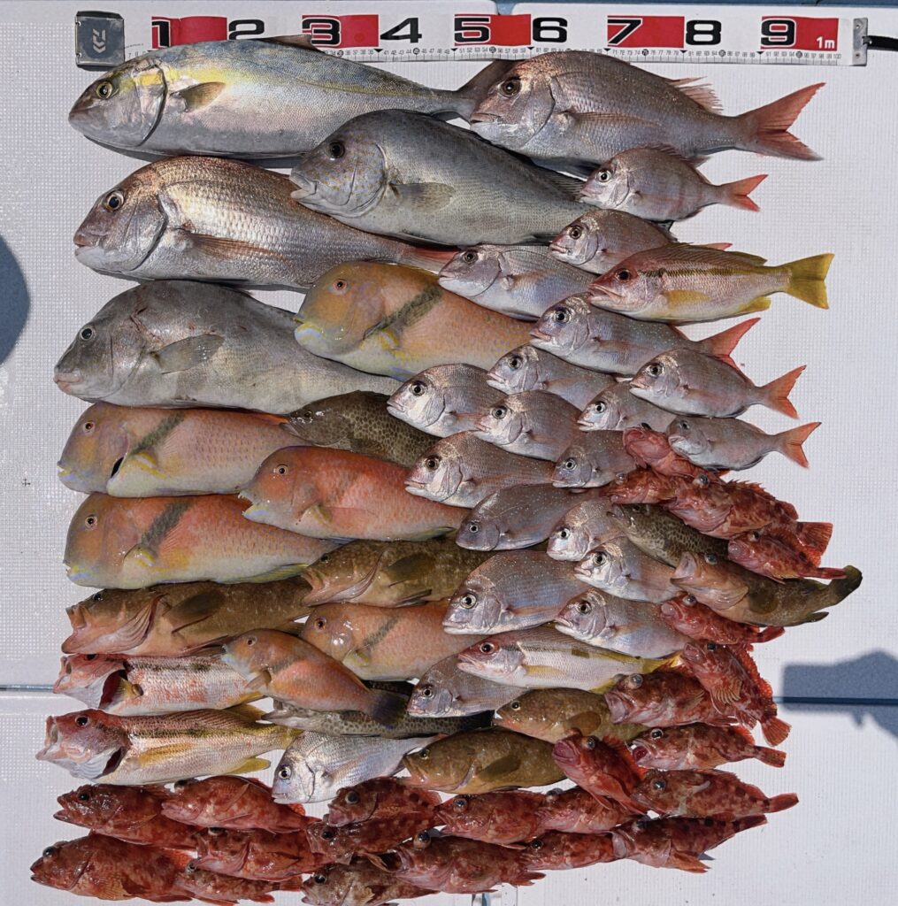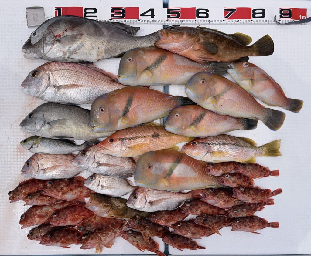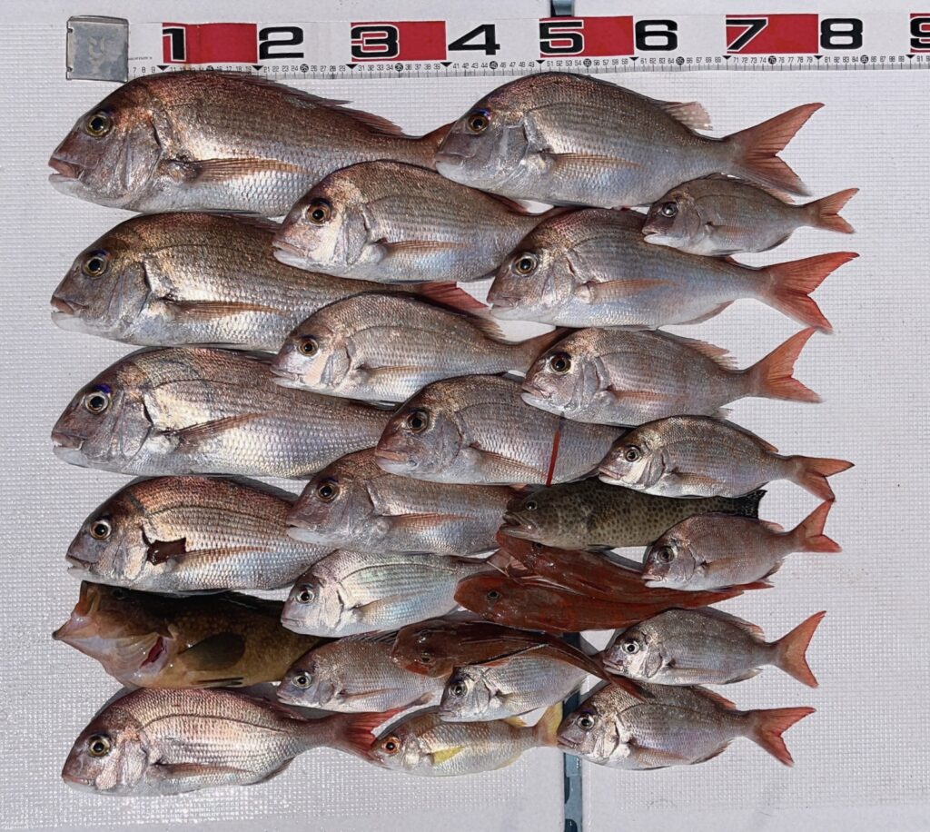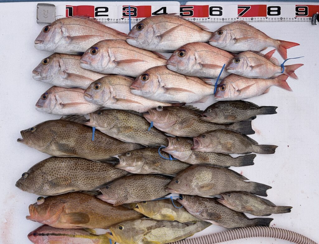 午後便もファミリーでしたが当たりが多く鯛とオオモンハタが大漁でした!仕掛けはたくさん切られましたが満足してもらえる釣果で楽しんでいただけました!またのご予約お待ちしております! -