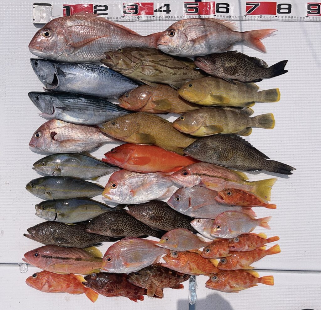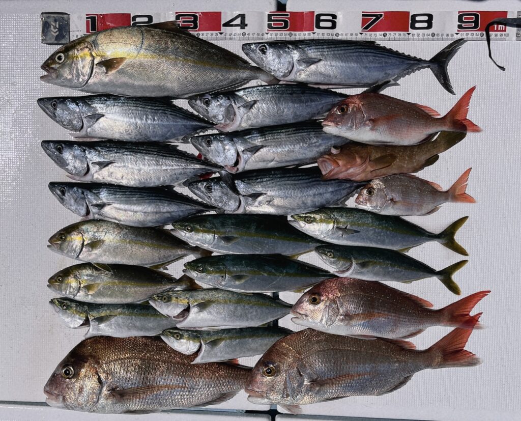 前回不発だった為リベンジ釣行でしたが今回はたくさん釣れました!ですが、カンパチに3本切られたのは痛かった、、なかなかデカかったんですけど😭それでもたくさん釣れて楽しんでいただけました!またのご予約お待ちしております! -
