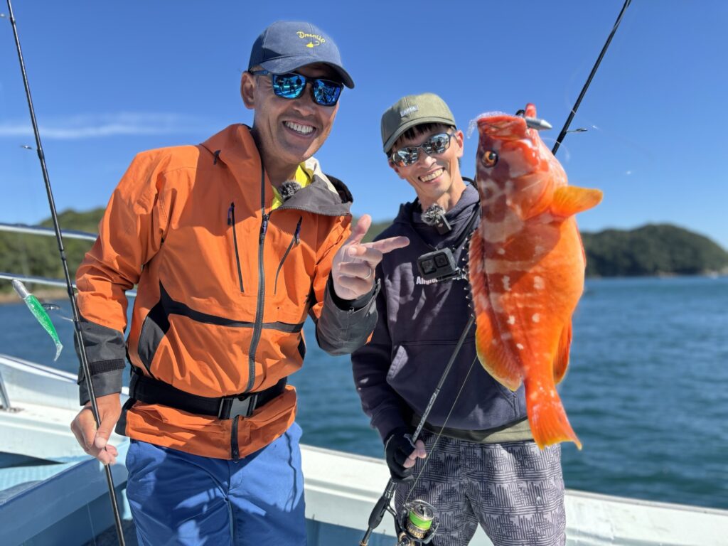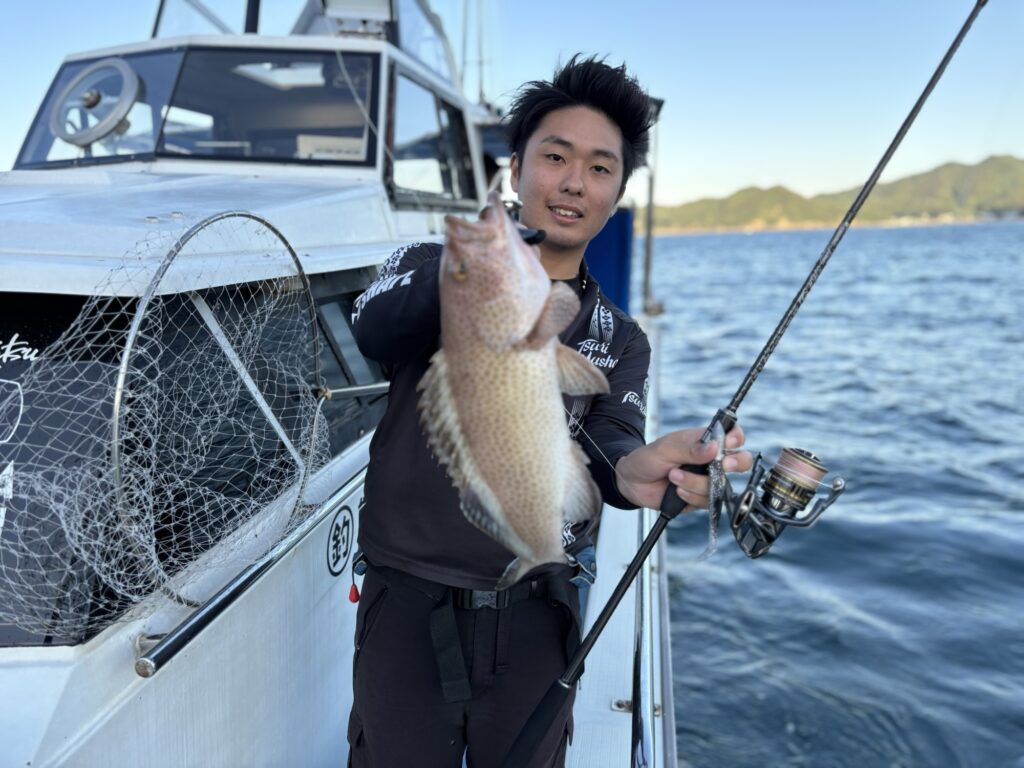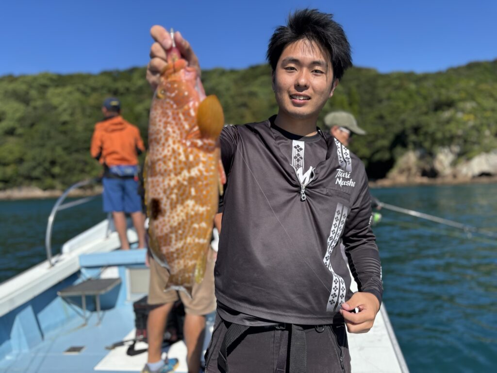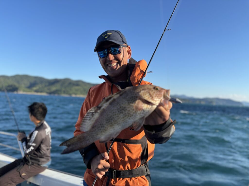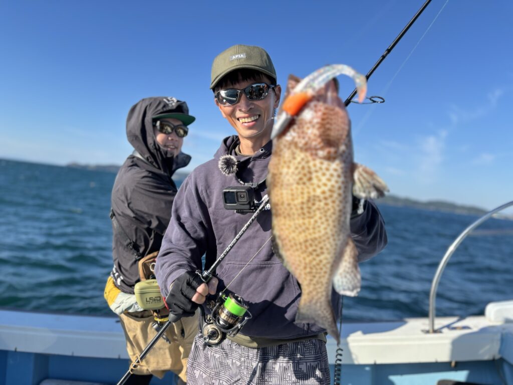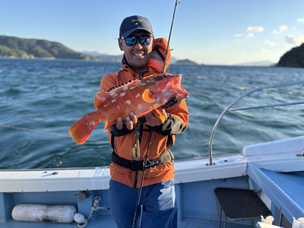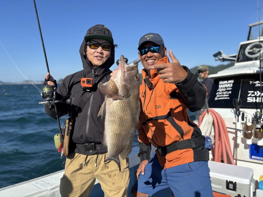朝から爆風で釣りにくいコンディションの中、45㎝オーバーのアカハタ👏