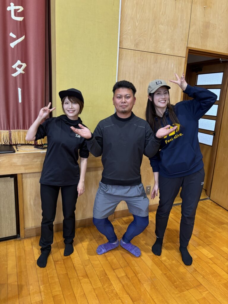 ゲストアングラーの方がバレーヒルの大西正人さん、ダイワの秋丸美帆さん、光安友香莉さん、デュエルのあさいあみさん、MCに野崎あいかさん!
