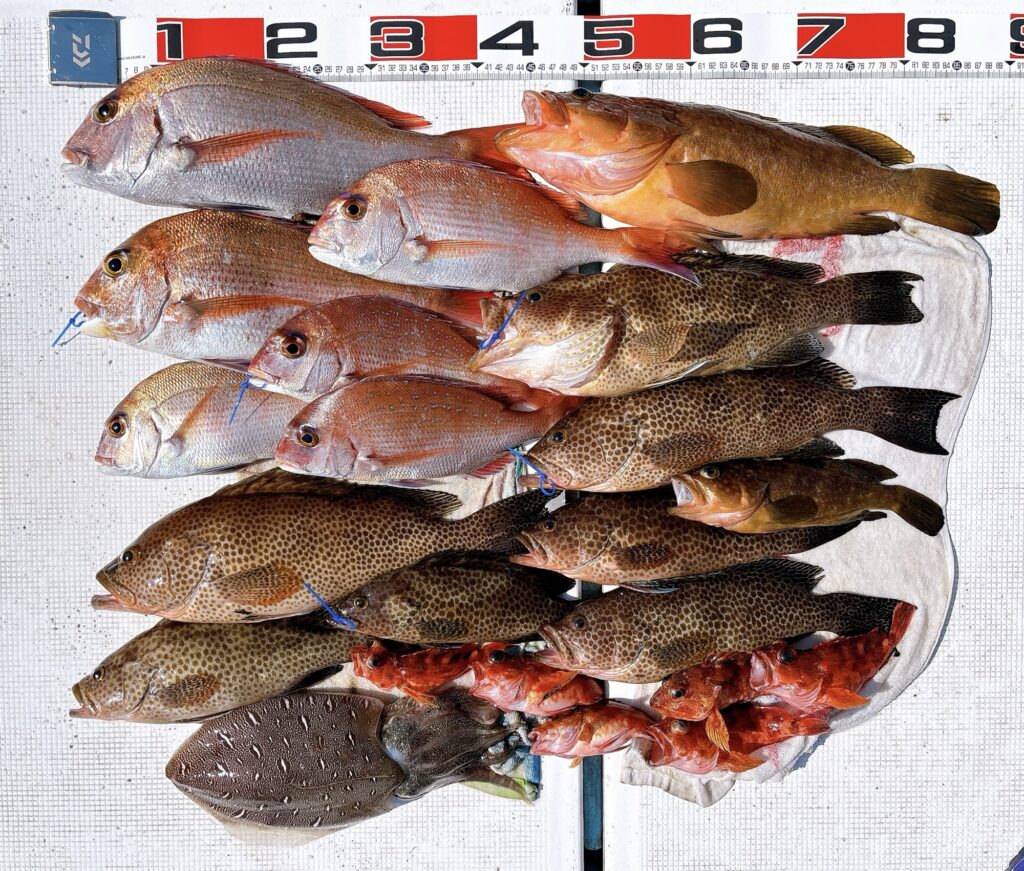 鯛に根魚に全員安打😮💨コウイカまでタイラバに釣れました🤣遠方からありがとうございました🙇またのご予約お待ちしております‼️